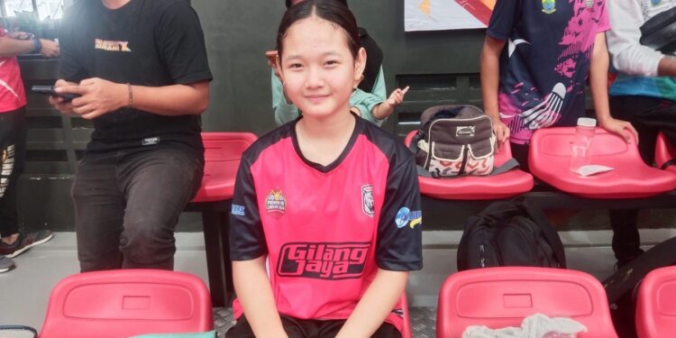 CIANJUR – Amiera Luceria Az -Zahra (13) mendapatkan sorotan di kejuaraan Bulutangkis kategori beregu Porkab VII Kabupaten Cianjur di Gor Asri Badminton Hall, Rabu (17/7/2024).