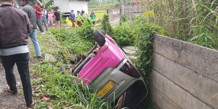 Saat menempuh jalan lurus dilalui dua arah menabrak angkutan umum jenis Suzuki Carry bernopol F 1969 yang melaju di depannya hingga terperosok ke selokan sekitar.