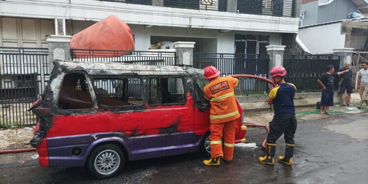 Cianjur – Satu unit angkutan kota (angkot) terbakar di Jalan Gombong, Kampung Limbangansari, Desa Limbangansari, Kecamatan Cianjur, Sabtu, (06/01/2024).