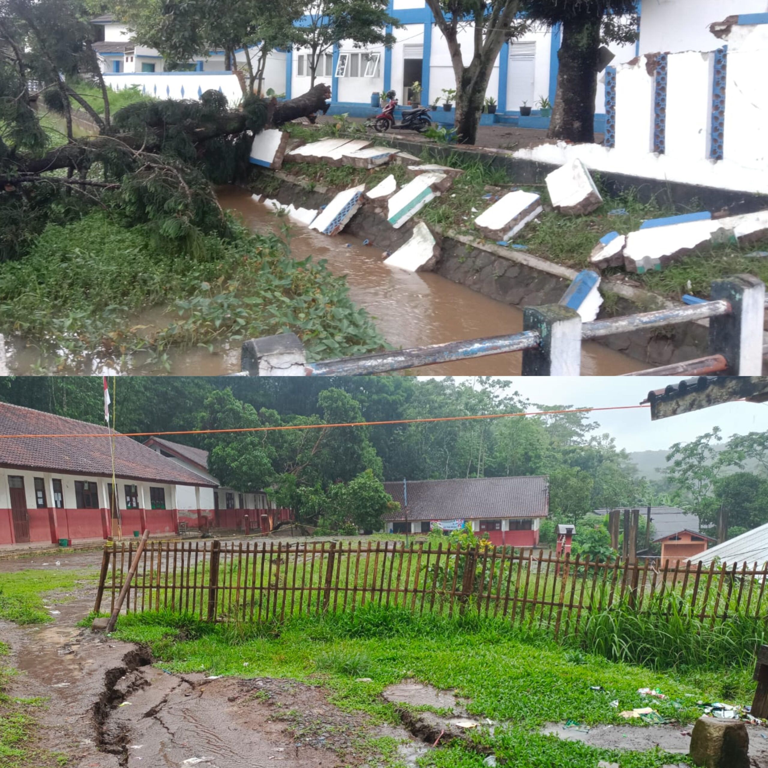 “Saat ini kan sedang ulangan semester. Khusus SMP 1 Tugas Bangsa Takokak itu dilaksanakan di rumah masing-masing secara online karena ada lima ruangan yang terkena dampak pergerakan tanah,” paparnya.