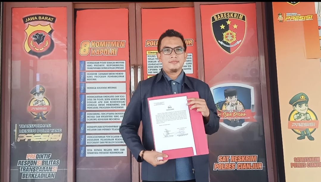 PELAPORAN: Tim kuasa hukum KH Choirul Anam, Abdul Kholik, resmi melaporkan Ketua Tanfidziyah PCNU Cianjur KH Deden Usman Ridwan ke Polres Cianjur. (Dok. Istimewa)