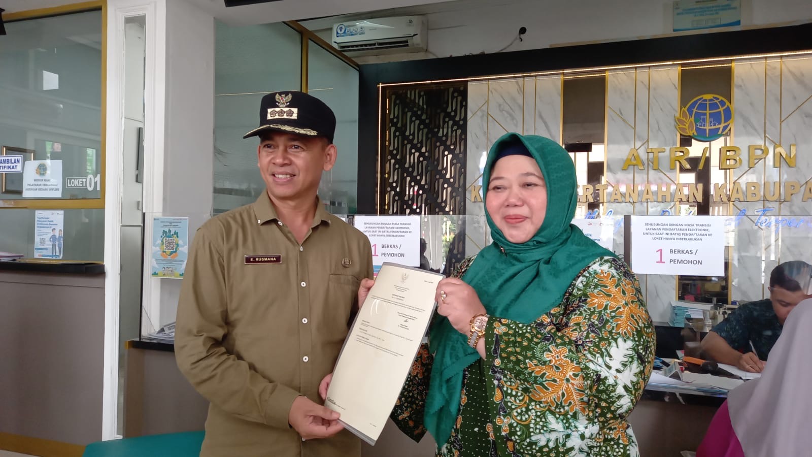 Ditemui seusai menerima sertifikat elektronik, Epi mengaku senang. Pasalnya, sertifikat elektronik yang diterimanya merupakan kali pertama diserahkan dari Kantor ATR/BPN.
