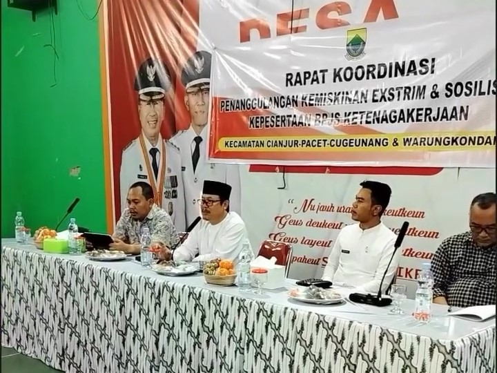 Kepala DPMD Cianjur, Iwan Setiawan memimpin langsung rapat tersebut. Ia menyebut rapat ini merupakan implementasi dari Instruksi Presiden Nomor 4 Tahun 2022 tentang percepatan penghapusan kemiskinan ekstrem yang harus tercapai di 2024.