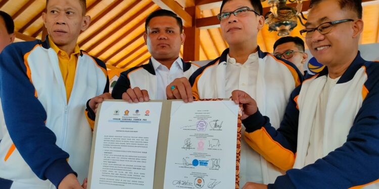 CIANJUR – Empat partai politik besar di Kabupaten Cianjur membentuk koalisi dalam kontestasi Pilkada Cianjur 2024, di Pendopo Tumaritis, Jumat (21/6/2024).