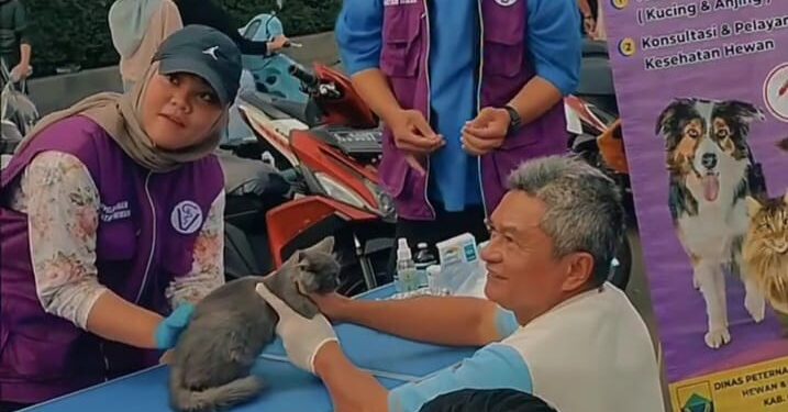 CIANJUR – Dinas Peternakan, Kesehatan Hewan dan Perikanan (DPKHP) Kabupaten Cianjur melaksanakan kegiatan pelayanan kesehatan hewan di Car Free Day (CFD) Jl. KH. Abdullah Bin Nuh, Cianjur, Minggu (10/11/2024).