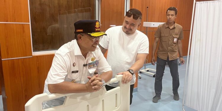 CIANJUR – Bupati Cianjur Herman Suherman turut didampingi oleh pengacara muda ternama Fanpan Nugraha saat melakukan kunjungan ke Desa Sindangkerta, Kecamatan Pagelaran, Kamis (18/7/2024).
