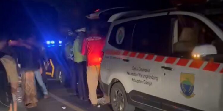 Cianjur – Dua pria terlindas truk saat mengendarai sepeda motor di Jalan Raya Sukabumi tepatnya di Kampung Samoja, Desa Ciwalen, Kecamatan Warungkondang, Kabupaten Cianjur, Sabtu, (09/03/2024) malam.