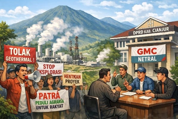 CIANJUR– Elemen masyarakat Peduli Agraria untuk Rakyat (Patra) menyoal Gerakan Masyarakat Cipanas (GMC) yang tiba-tiba muncul menanggapi konflik proyek panas bumi geothermal yang dikerjakan PT Daya Mas Geopatra Pangrango (DMGP) dengan masyarakat.