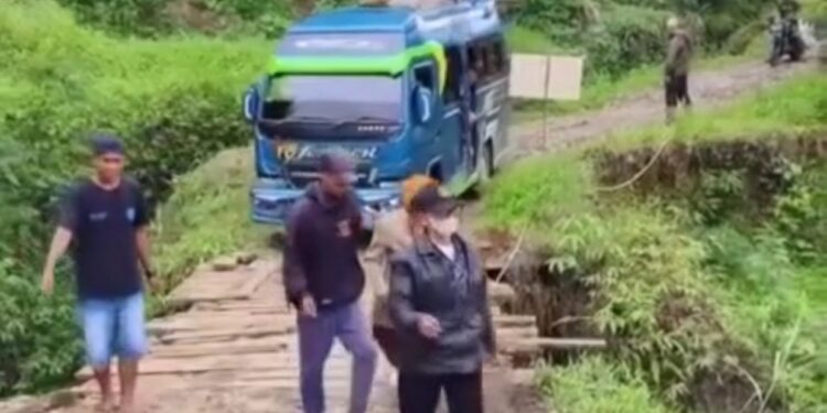 Cianjur– Viral video berdurasi 44 detik sebuah jembatan kayu keropos menghawatirkan dilewati oleh kendaraan jenis elf di perbatasan Desa Padasuka dan Desa Mekarmukti, Kecamatan Cibinong, Kabupaten Cianjur.