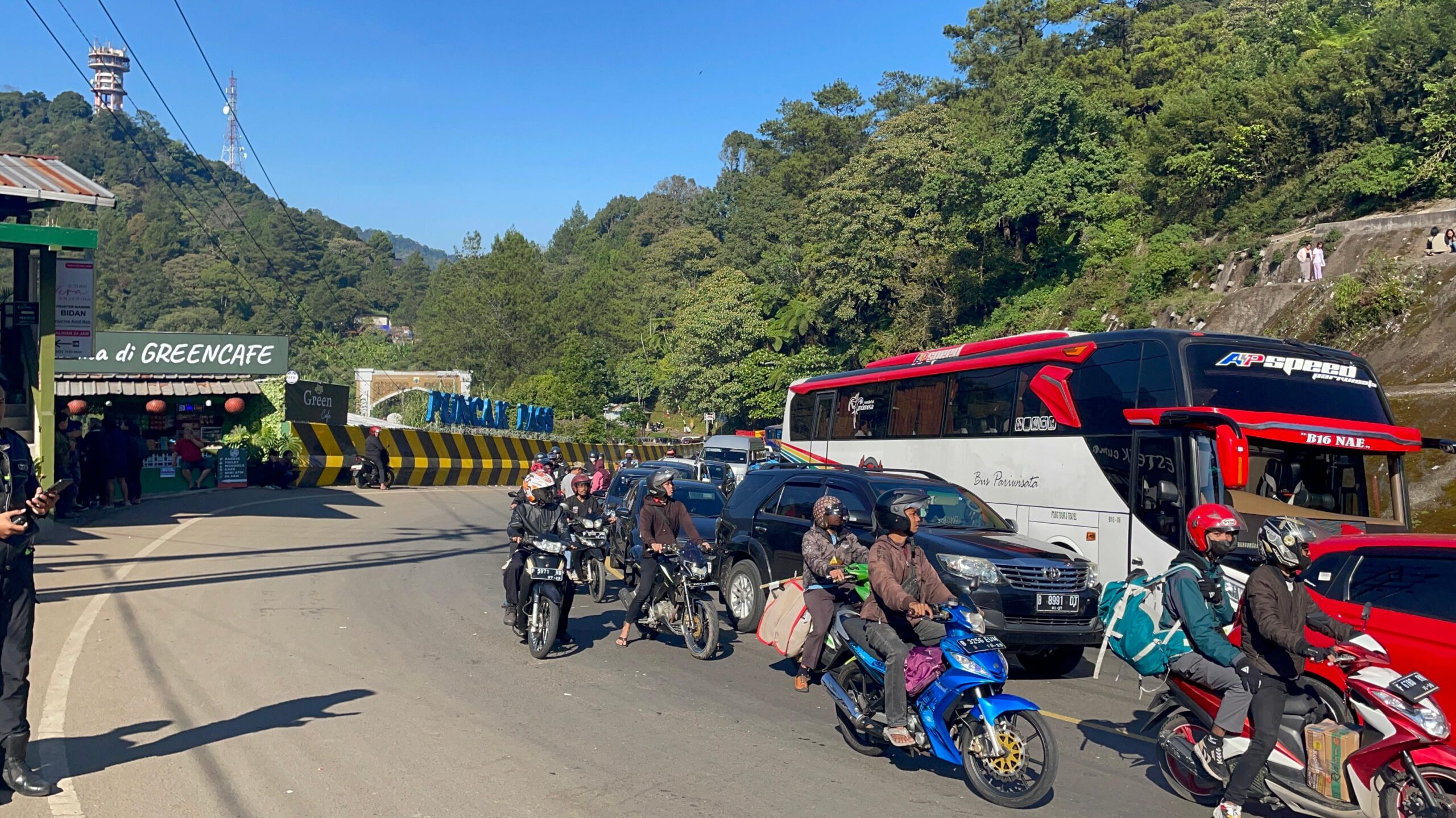Petugas kepolisian dari Polres Bogor maupun Polres Cianjur berupaya mengurai kemacetan. Salah satunya memberlakukan sistem satu arah (one way) dari arah Cianjur menuju ke Bogor.