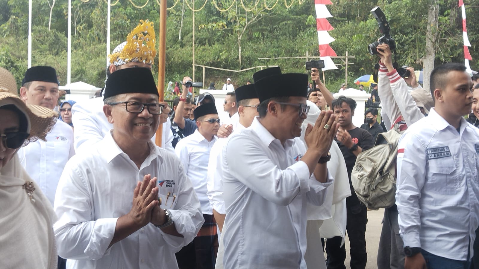 Saat turun dari mobil, Herman dan Ibang juga turut didampingi istri masing-masing. Herman dan Ibang seragam mengenakan kemeja berwarna putih serta bersarung dan pada bagian leher mengalung syal bermotif baik dan bersarung.