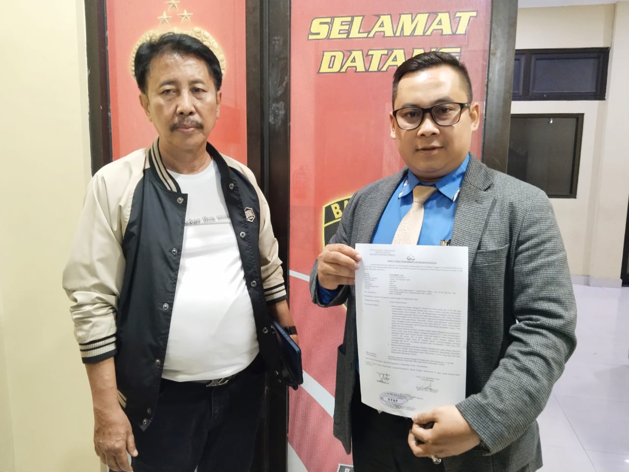 PELAPORAN: Firly Sopirmas (kanan) menunjukkan surat pelaporan Kepala Desa Mekarwangi Usep Nurodin ke Polres Cianjur. (Dok. Istimewa)