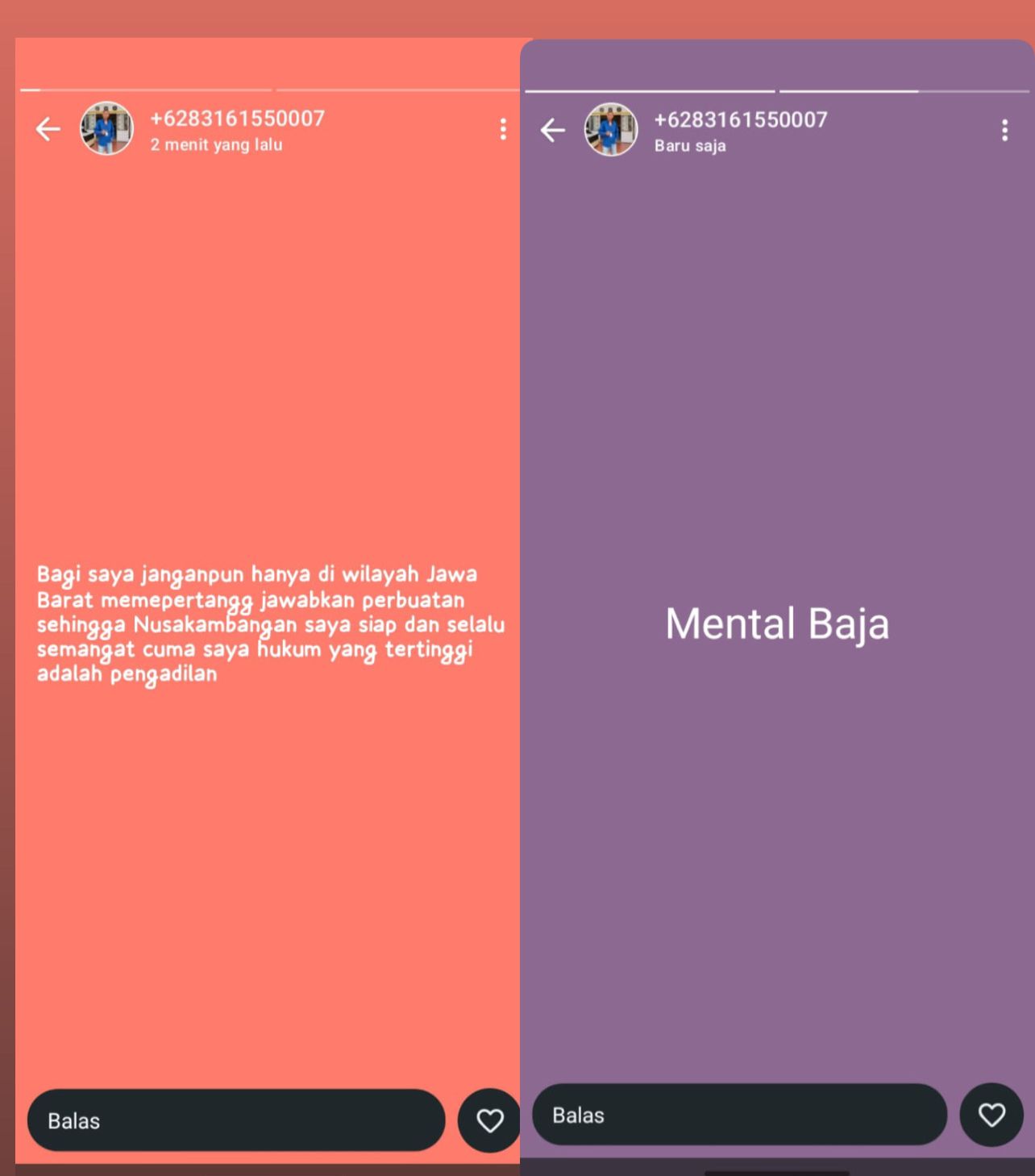 Status itu terbaca salah seorang masyarakat yang nomor kontaknya terhubung dengan pelaku T. Pada status WA milik nomor kontak T tertulis: ‘Bagi saya jangan pun hanya di wilayah Jawa Barat mempertanggungjawabkan perbuatan, sehingga Nusakambangan saya siap dan selalu semangat cuma hukum saya tertinggi adalah pengadilan’.