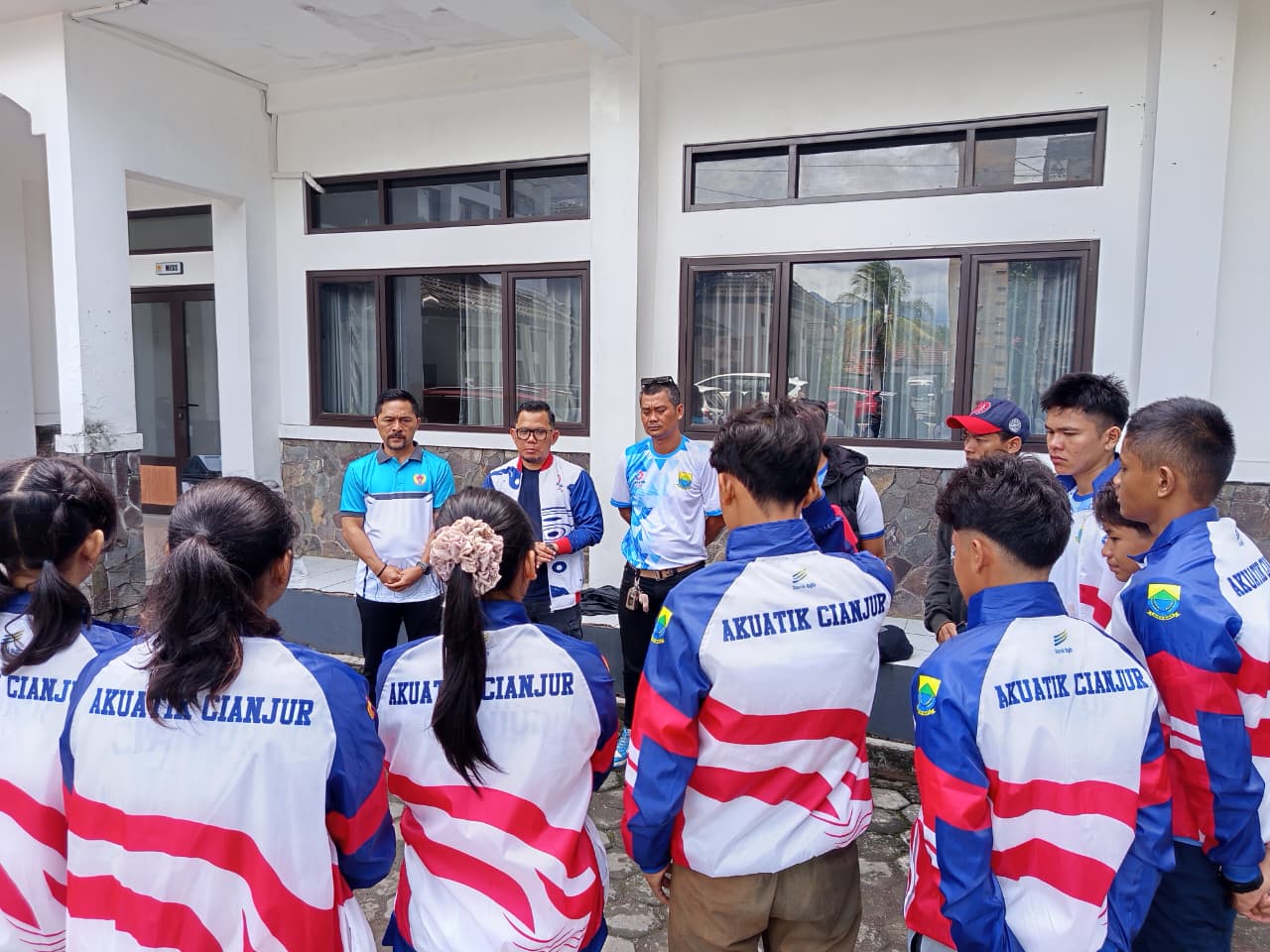 Ketua Umum KONI Kabupaten Cianjur Beny Rustandi dan jajaran pengurus melepas langsung kontingen cabor akuatik. Beny pun menitipkan pesan dan harapan kepada para atlet, pelatih, maupun ofisial.