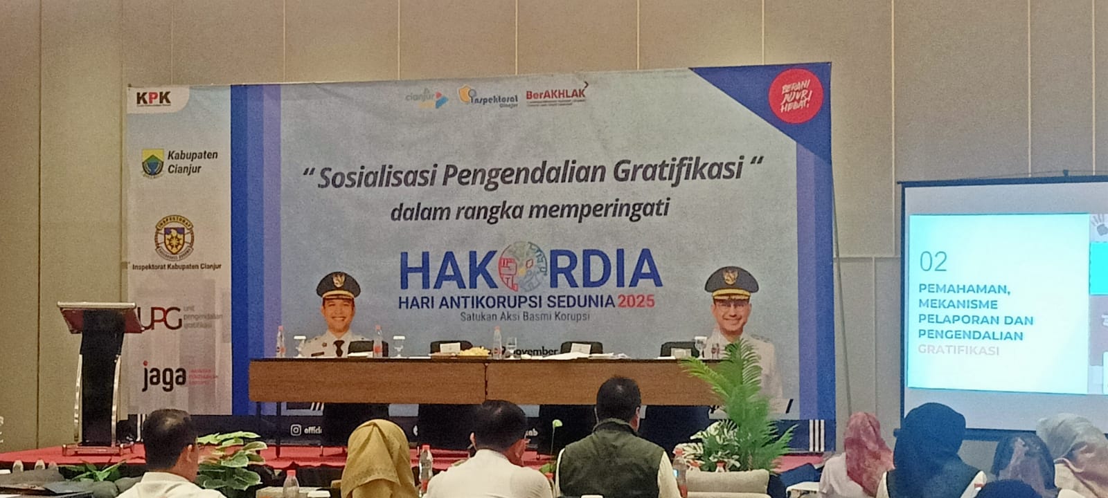 Diketahui, KPK datang ke Cianjur dalam rangka sosialisasi pengendalian gratifikasi dalam rangka Hari Anti Korupsi Sedunia (HAKORDIA) 2025 menyasar Aparatur Sipil Negara (ASN) di lingkungan Pemkab Cianjur diselenggarakan di salah satu hotel.