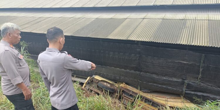 Cianjur – Satu unit truk yang hendak mengangkut telur di Kampung Parabon, Desa Salagedang, Kecamatan Cibeber Kabupaten Cianjur terguling ke jurang sedalam 7 meter, Minggu, (14/04/2024).