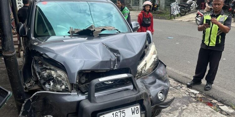 Cianjur – Satu unit mobil Toyota Rush bernopol F 1675 WO terlibat kecelakaan di Jalan Arwinda, Kampung Kopo, Desa Sukataris, Kecamatan Karangtengah, Senin (26/02/2024), sekira pukul 12.30 WIB.