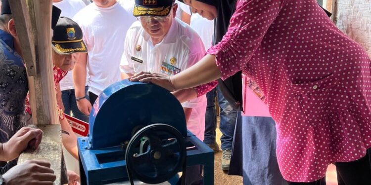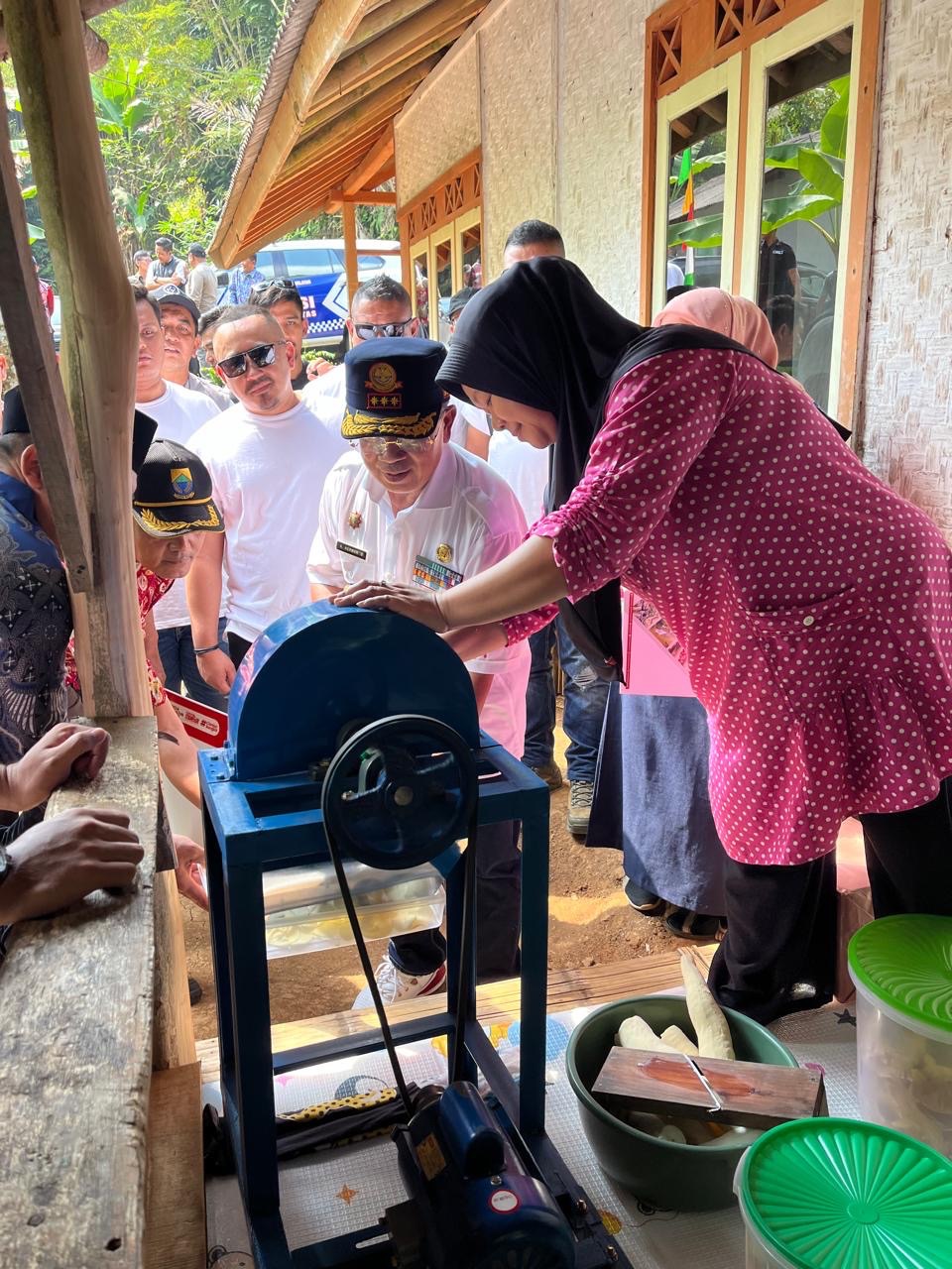 Selain itu, Bupati juga memberikan alat iris singkong kepada salah satu warga di Desa Sindangkerta.