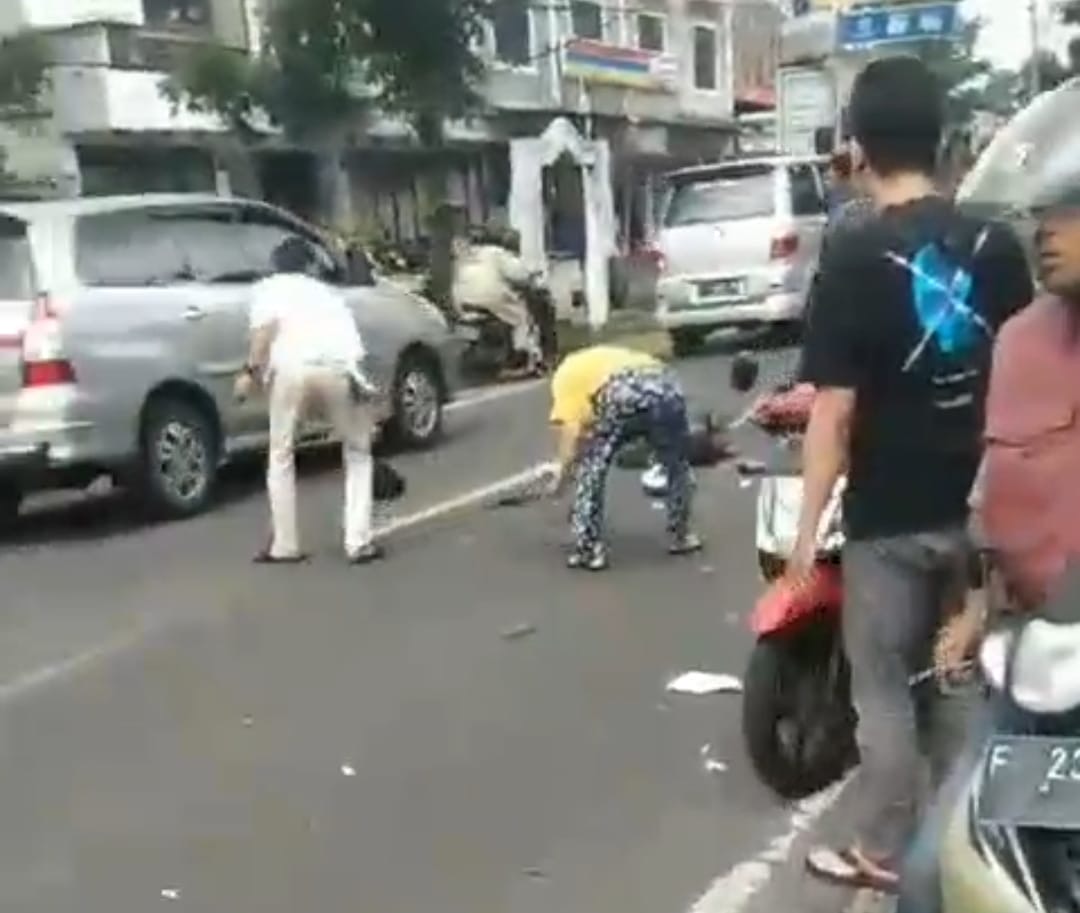 ADU BANTENG: Dua pemotor terlibat tabrakan di Jalan Raya Cianjur-Sukabumi Desa Ciwalen Kecamatan Warungkondang. (Tangkapan layar/Dok. Istimewa)