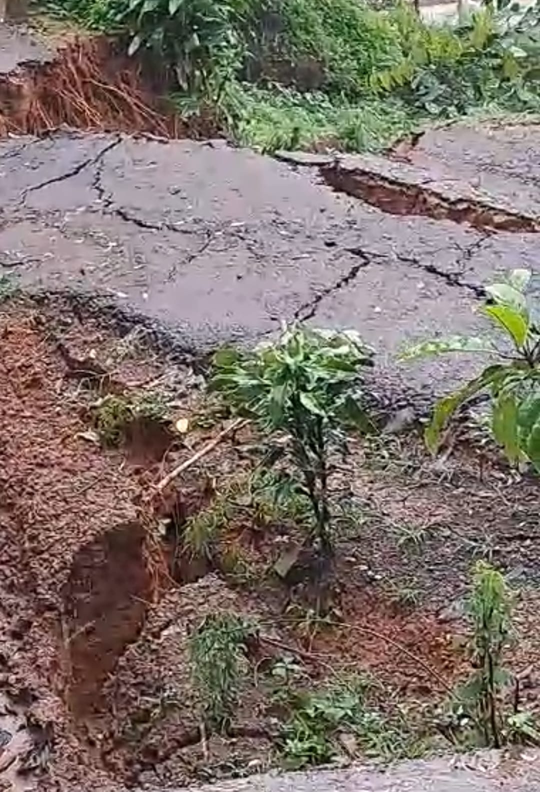 Di wilayah itu, bencana mengakibatkan dua titik ruas jalan rusak. Kondisinya ambles hingga terbelah.
