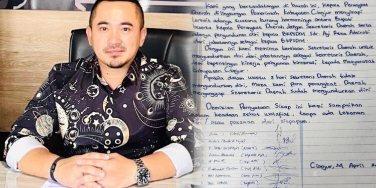 Cianjur – Pengamat kebijakan publik asal Cianjur Fanpan Nugraha menilai terkait adanya petisi tuntutan pengunduran diri para OPD terhadap Sekda Kabupaten Cianjur Cecep Alamsyah menandakan bahwa internal perangkat Pemkab Cianjur sedang tidak baik-baik saja.
