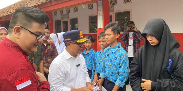 KUNJUNGAN: Bupati Cianjur Herman Suherman mengunjungi PKBM Paku Bumi di Desa Cintaasih, Kecamatan Gekbrong. (Dok. Logikanews)