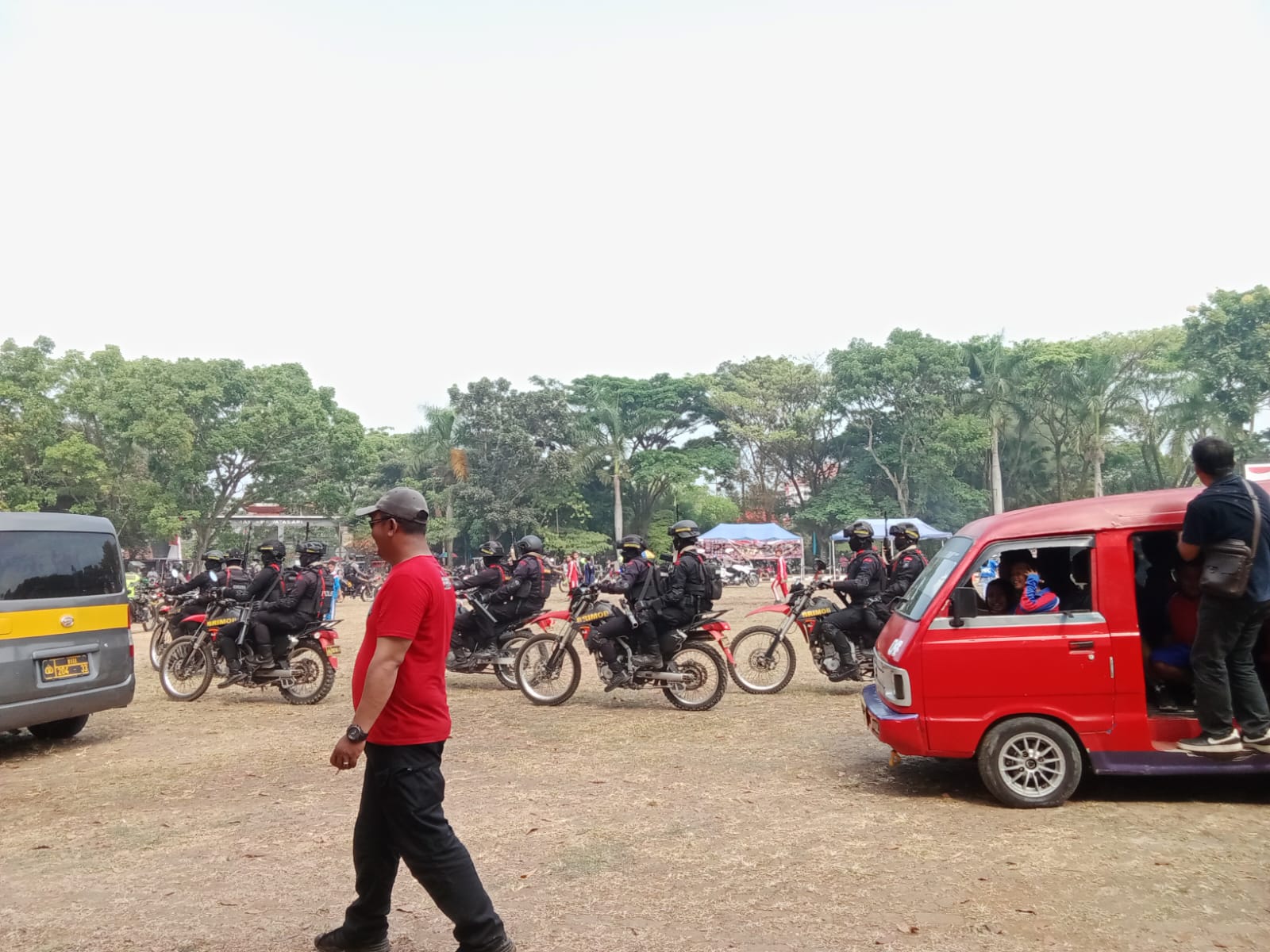 SIMULASI: Polres Cianjur menggelar simulasi Sispamkota di Lapang Prawatasari. Kegiatannya merupakan bentuk latihan menghadapi Pilkada. (Dok. Istimewa)