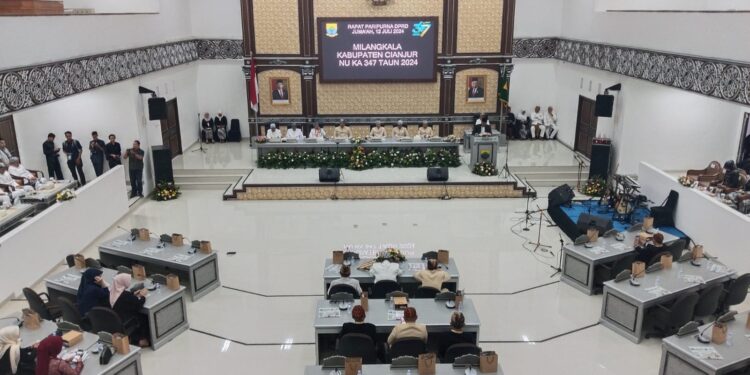 CIANJUR – Dewan Perwakilan Rakyat Daerah (DPRD) Kabupaten Cianjur resmi menutup rapat paripurna terakhir di masa jabatan anggotanya periode 2019 hingga 2024, Jumat (12/7/2024). Rapat paripurna sendiri berbarengan dengan pembahasan Hari Jadi Cianjur (HJC) ke-347.