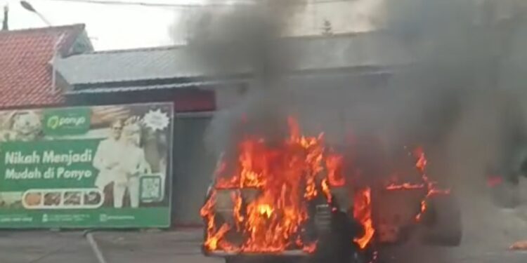 CIANJUR – Satu unit mobil terbakar di ruas Jalan Raya Puncak atau di sekitar tempat parkir salah satu rumah makan di Desa Cimacan Kecamatan Cipanas, Selasa, 2 Desember 2025. Tidak ada korban jiwa pada peristiwa itu, namun sopir mengalami luka bakar.