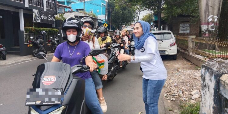 Pemandangan emak-emak yang memiliki semangat untuk berbagi, menjadi pusat perhatian para pengendara maupun masyarakat sekitar.