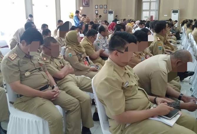 CIANJUR – Kegiatan rapat penandatanganan pakta integritas netralitas ASN digelar di Bale Prayoga Komplek Pendopo Cianjur, Senin, 2 September 2024. Di sela kegiatan itu, terlihat salah seorang pejabat yang tertidur pulas.