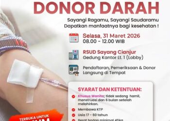 Read moreCIANJUR- RSUD Sayang kembali menyelenggarakan kegiatan donor darah yang akan dilaksanakan pada besok, Selasa 31 Maret 2026 di Lobi Gedung ...