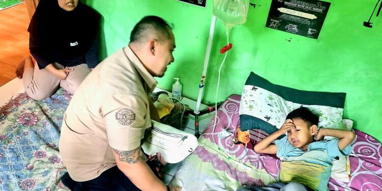 CIANJUR – Jajaran Kantor Hukum Fans & Partners Law Firm menjenguk bocah penderita gagal ginjal, Salwu Fadli Amanah (9), di Kampung Rawasari Desa/Kecamatan Sukanagara, Sabtu, 14 Juni 2025. Kondisinya kesehatan anak pasangan suami istri Sri Trisna Hayati (31) dan Indra Suhendra (32) itu memprihatinkan karena harus rutin menjalani cuci darah.