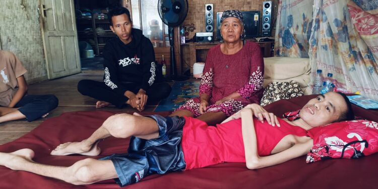 CIANJUR – Gisani Ali Rahman Alif (32), warga Cidalem RT 002/005, Desa Wanasari Kecamatan Agrabinta mengalami lumpuh sejak 7 tahun lalu. Lelaki yang sebelumnya bermatapencaharian sebagai penjahit itu sudah tak bisa beraktivitas normal.