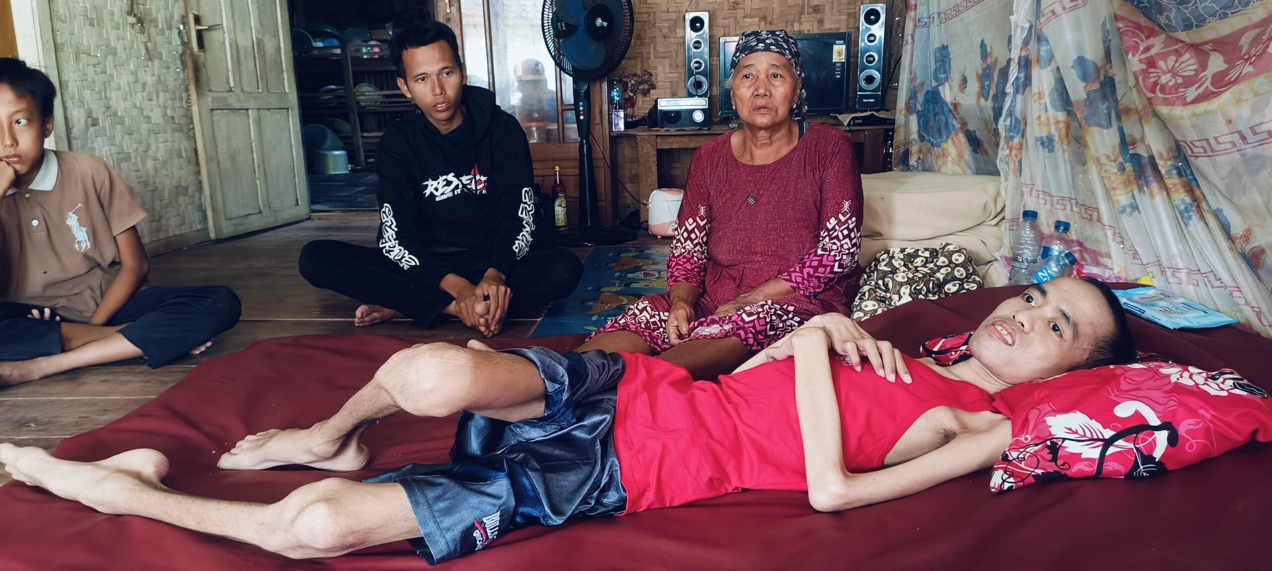 Waktunya dihabiskan di kasur. Sementara untuk makan ataupun buang air kecil dan besar dibantu keluarganya.
