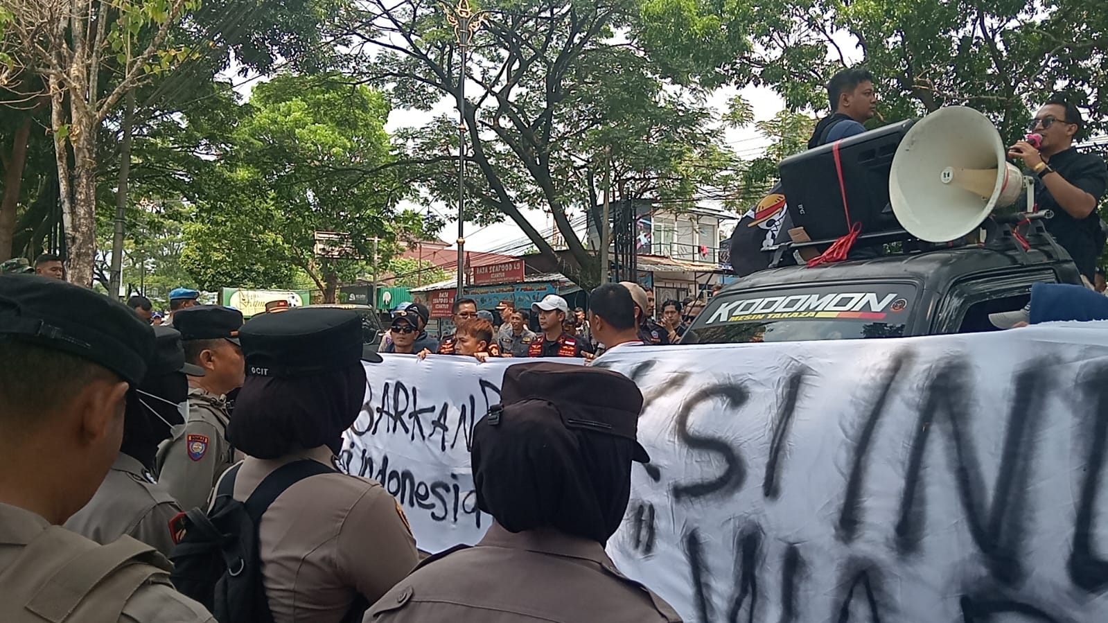 Koordinator Lapangan (Korlap) Regi Muharam mengatakan, ada tiga tuntutan yang disuarakan pada aksi kali ini.